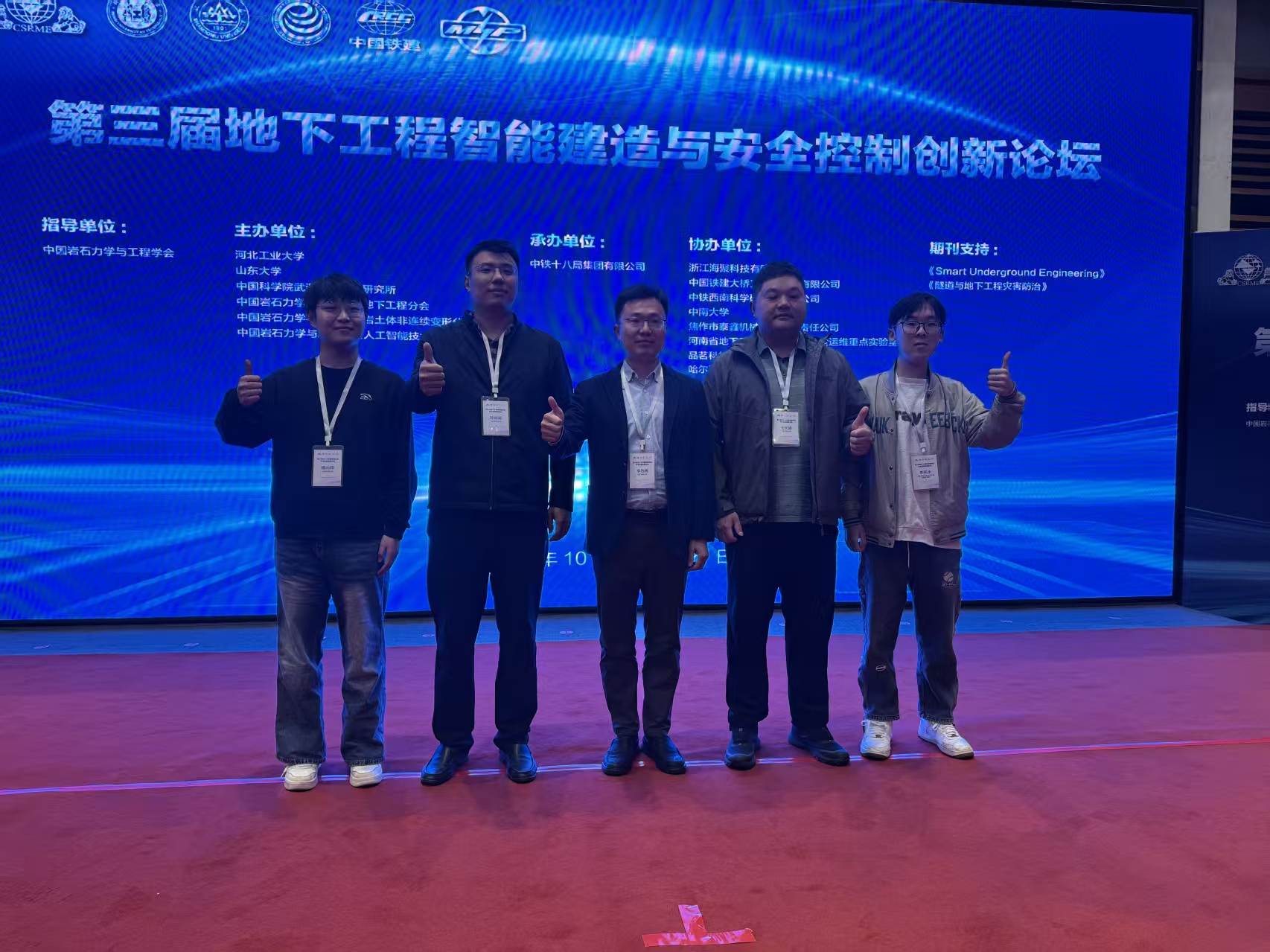 本次会议聚焦智能建造与安全控制技术在地下工程领域的科技创新进行学术交流与合作。李为腾、孙尚渠分别围绕大跨岩质隧道高预应力锚杆主动支护建造关键技术、软硬复合地层盾构滚刀破岩冲击效应与监测方法发表精彩主题报告。在此次会议的交流互动中,学院师生与来自全国各地的地下工程领域专家学者开展了多维度、深层次的学术探讨,不仅打破了研究视野的局限,更深化了对岩土力学与工程领域前沿研究动态、技术趋势的认知,为后续研究的创新突破、方向校准提供了全新思路与实践路径。