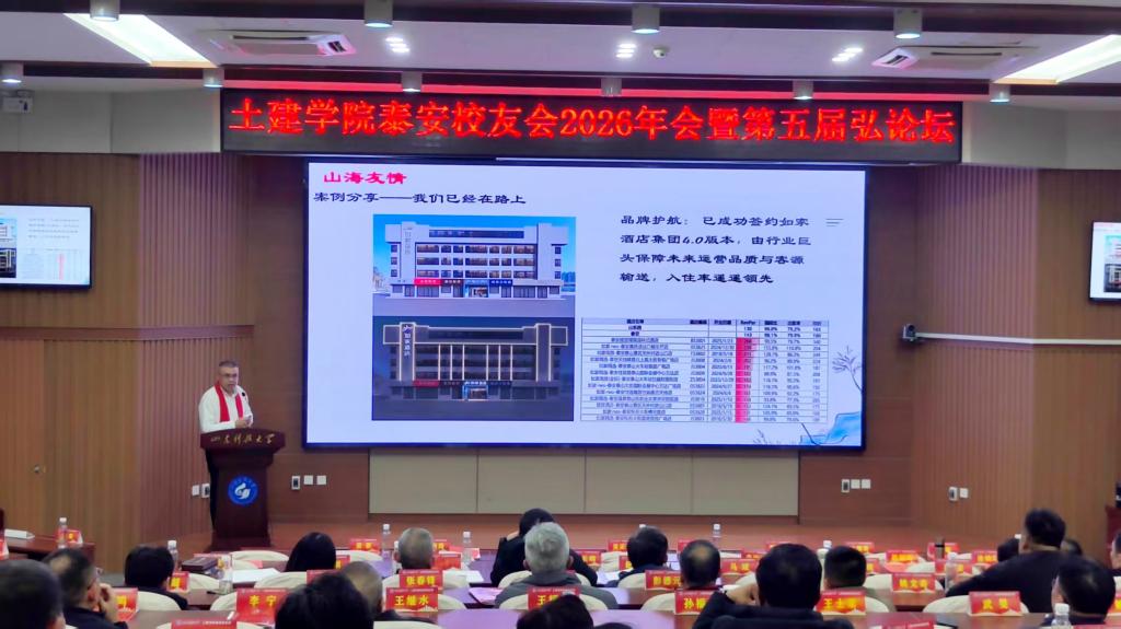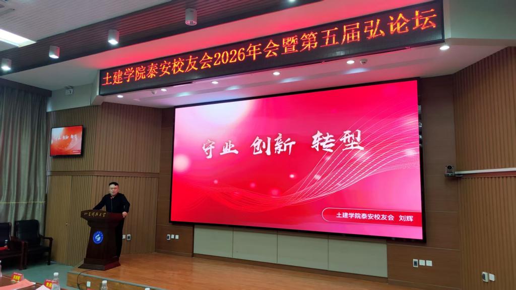 1月10日,山东科技大学土木工程与建筑学院泰安校友会2026年校友年会暨第五届弘论坛在泰安校区隆重举行。山东科技大学泰安校区党委书记吴正龙,土建学院党委书记宋西路,土建学院泰安校友会会长李天忠,青岛、徐州等地兄弟校友会代表及在泰安校友百余人齐聚一堂,共叙同窗情谊,共谋学院发展。