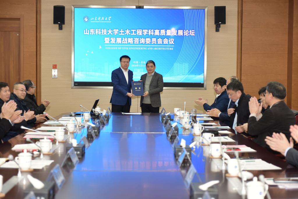 1月11日,山东科技大学举办土木工程学科高质量发展论坛暨发展战略咨询委员会会议,校党委书记王君松出席会议并致辞,中国工程院院士、山东大学校长李术才线上致辞。会上,王君松为发展战略咨询委员会主任委员、中国工程院院士、武汉大学刘泉声教授,副主任委员、日本工程院外籍院士、北京工业大学赵衍刚教授,以及浙江大学建筑工程学院院长罗尧治、重庆大学土木工程学院院长杨庆山分别颁发聘书。刘泉声院士、山东科技大学副校长薛庆忠分阶段主持会议。