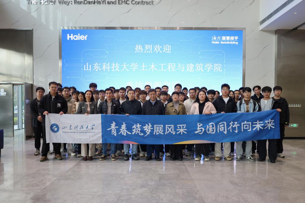 为深化产教融合、促进毕业生高质量就业,10月28日,土建学院组织开展“送才入企”专项行动,土建学院党委副书记、副院长高静、建筑环境与能源应用工程系主任张长兴、教师刘玉峰、丛晓春、李胜及辅导员张方源一行,与土建学院2026届、2027届毕业生代表共同前往海尔集团进行参观交流。