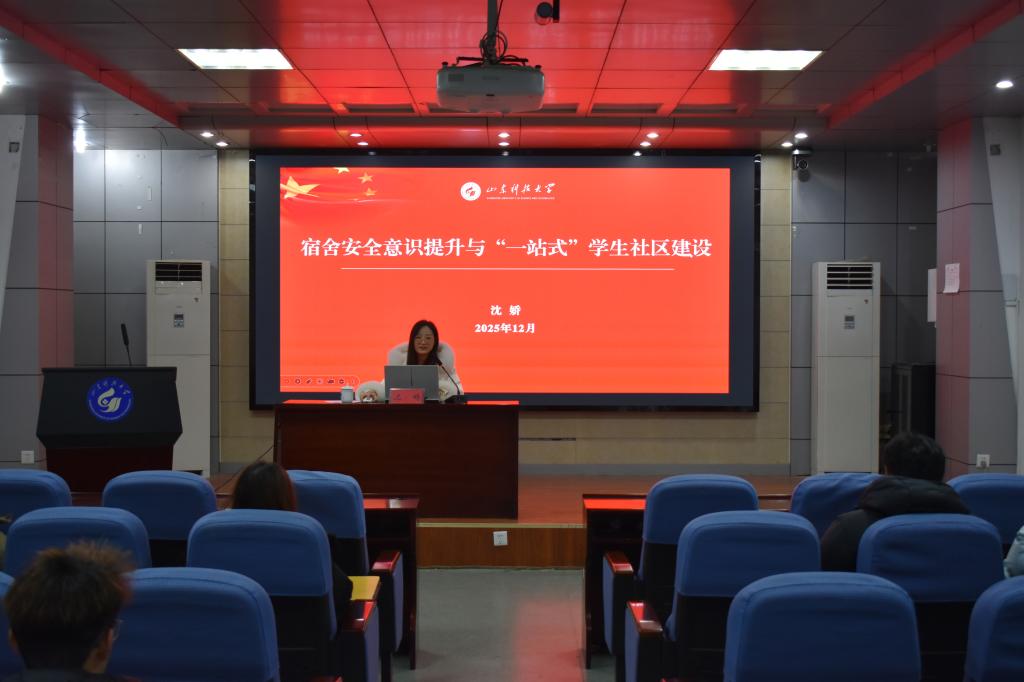 为强化宿舍安全意识,明晰“一站式”学生社区建设的核心方向,土建学院沈娇老师于12月22日在J15-219开展主题为“宿舍安全与‘一站式’学生社区建设”专题讲座,24、25级团支书、班长、团支部委员及学生会主干到场聆听学习。