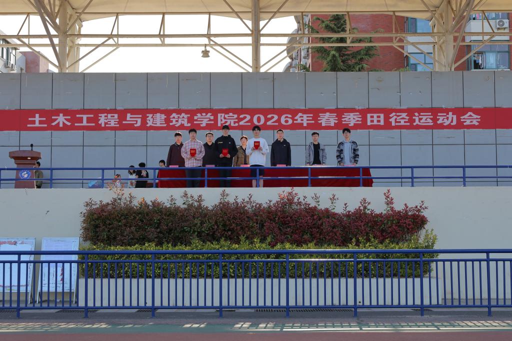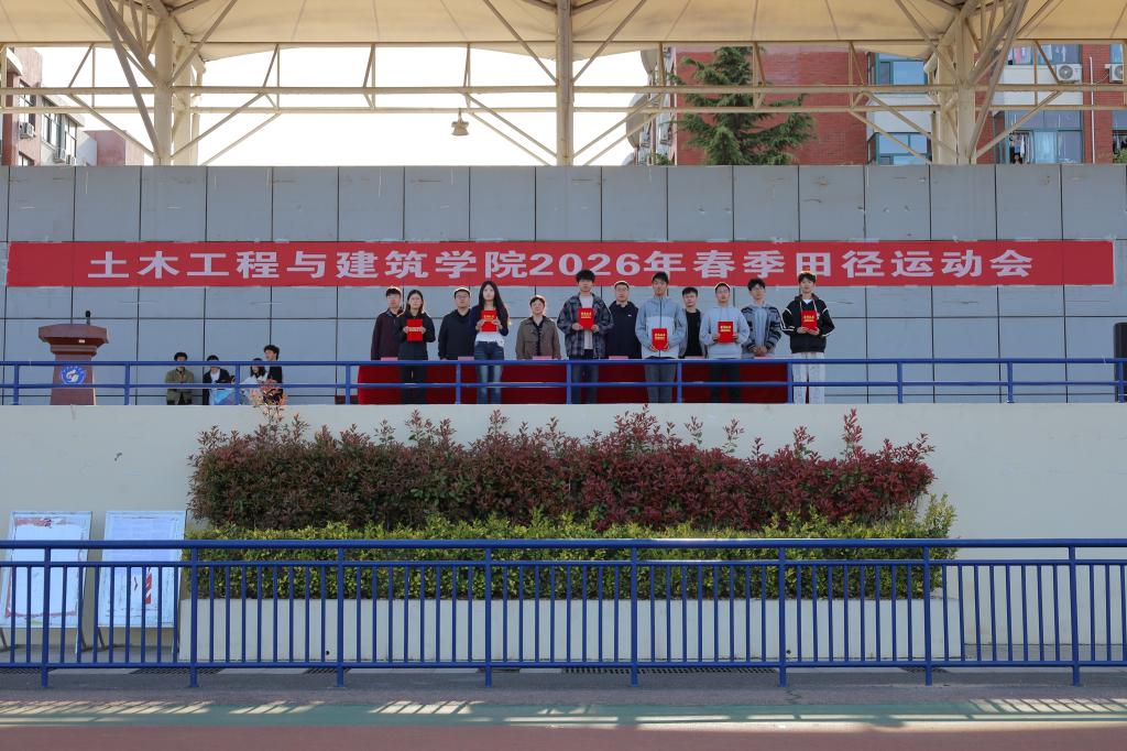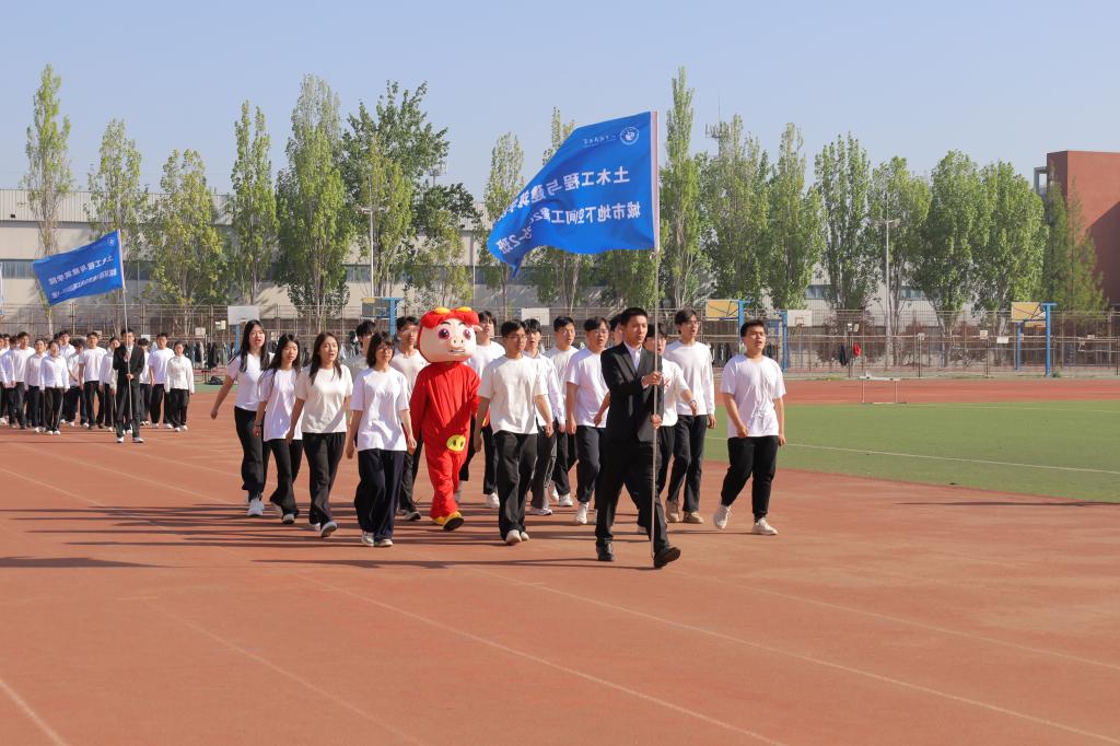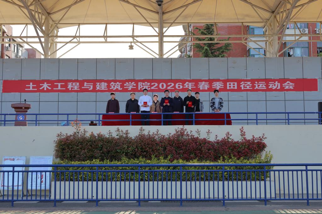 为增强学生身体素质,丰富校园文化生活,展现土建学子朝气蓬勃、奋发向上的精神风貌,4月19日,土建学院举办2026年春季田径运动会。学院党委书记王崇革、党委副书记兼副院长高静、副院长杨旭旭、都浩、秦哲、全体辅导员老师以及学生代表参加开幕式。开幕式由学院学生工作办公室主任、团委书记王贝贝主持。