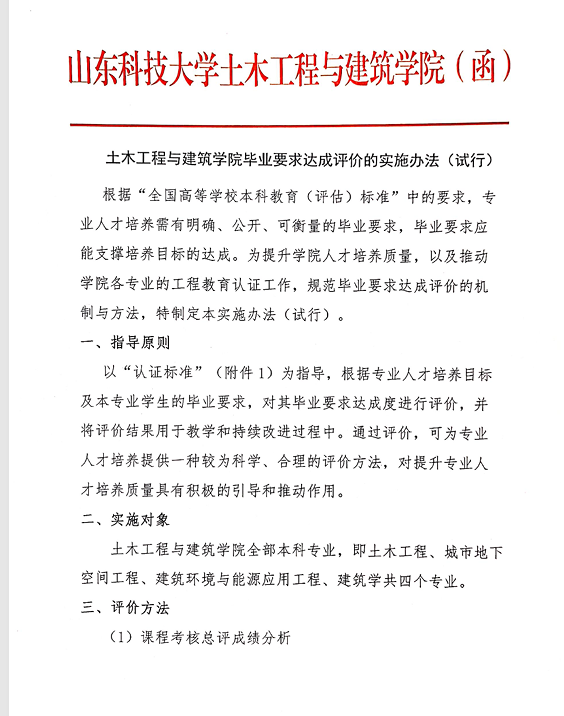 土木工程与建筑学院毕业要求达成评价的实施办法(试行)