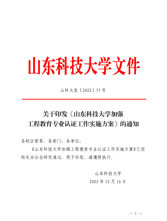 关于印发《山东科技大学加强工程教育专业认证工作实施方案》的通知