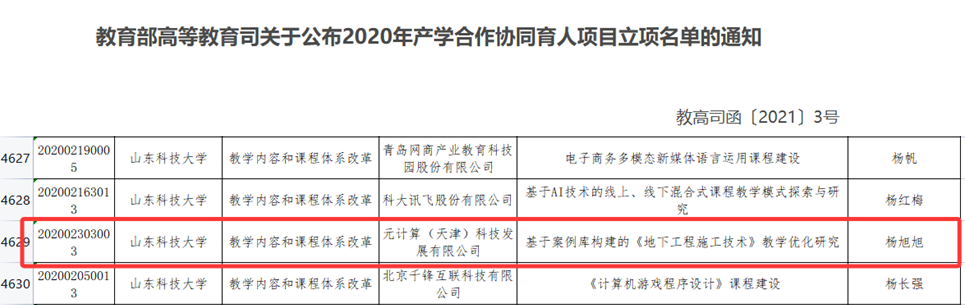 1-15 教育部产学合作协同育人项目:基于案例库构建的《地下工程施工技术》教学优化研究