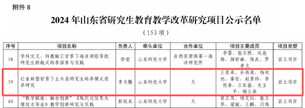 1-1 山东省研究生教改项目面上项目:行业转型背景下土木类研究生培养模式改革研究