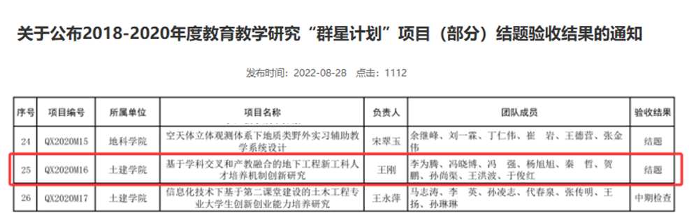 1-8 山东科技大学研究生教改项目:基于学科交叉和产教融合的地下工程新工科人才培养机制创新研究