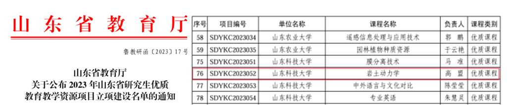 1-3 山东省研究生教育优质课程建设项目:《岩土动力学》
