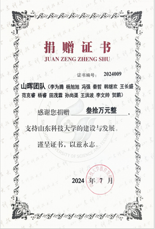 3-14 社会贡献:向教育基金会捐赠 30 万元,设立山晖奖学金