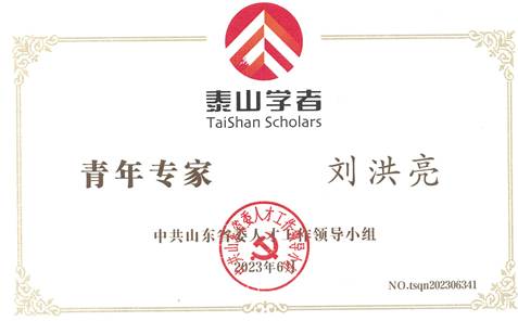 3-22 刘洪亮:中共山东省委人才领导小组授予“泰山学者青年专家”人才称号