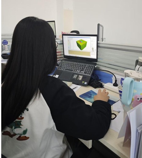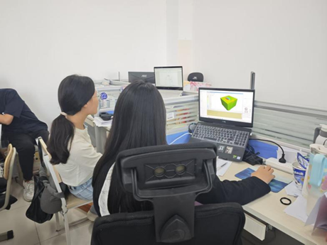 (图为小队成员通过FLAC数值模拟软件进行安全施工距离计算分析)