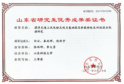 5-15 山东省研究生优秀成果奖:漂浮式海上风电裙式吸力基础服役承载特性及回收拔出机理研究