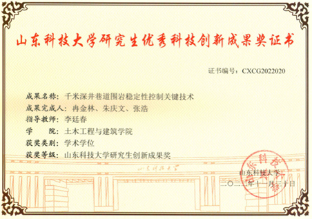 5-14 山东省研究生创新成果奖:千米深井巷道围岩稳定性控制关键技术