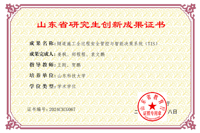 5-13 山东省研究生创新成果奖:隧道施工全过程安全管控与智能决策系统(TIS)