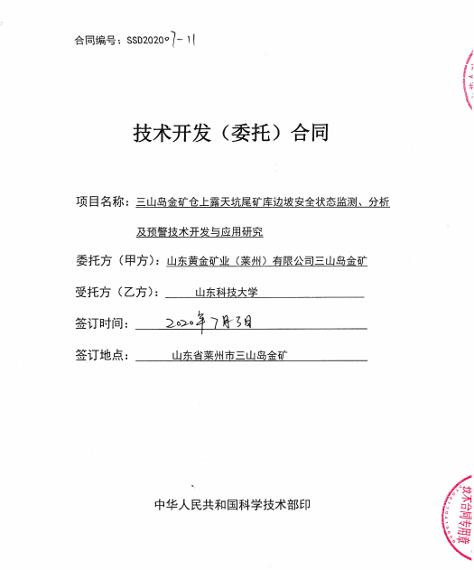 6-20 山东黄金矿业(莱州)有限公司三山岛金矿:三山岛金矿仓上露天坑尾矿库边坡安全状态监测、分析及预警技术开发与应用研究