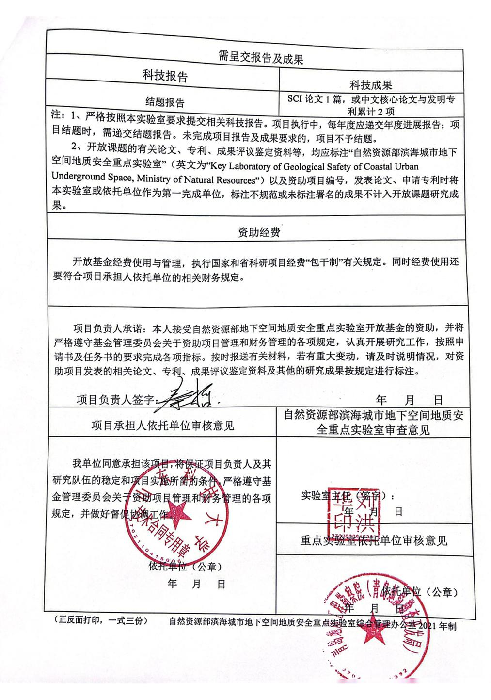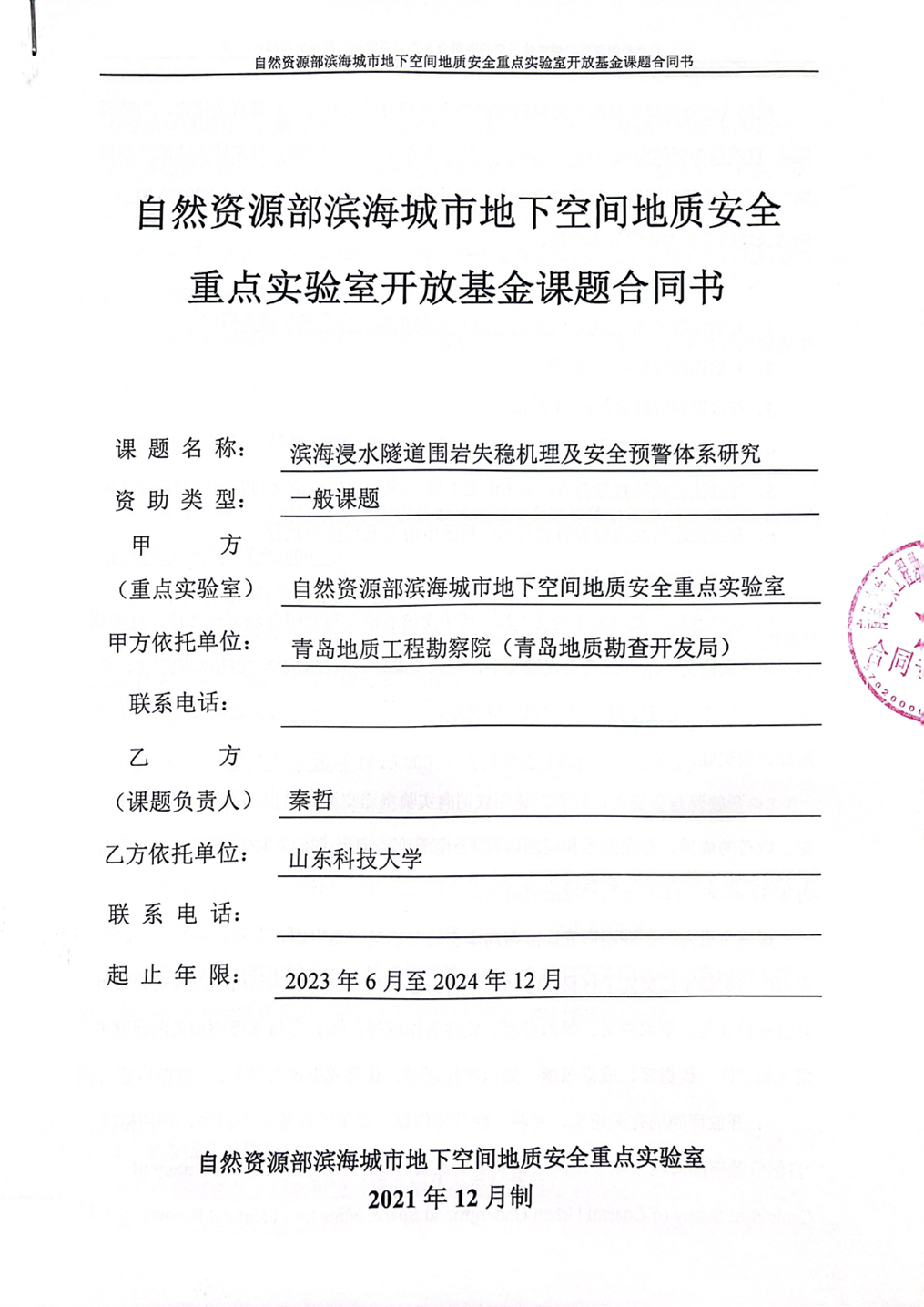 6-16 自然资源部滨海城市地下空间地质安全重点实验室:滨海浸水隧道围岩失稳机理及安全预警体系研究