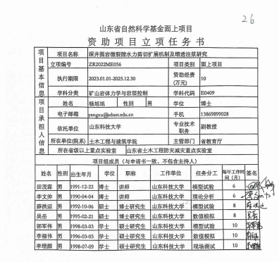 6-9 山东省自然科学基金面上项目:深井围岩微裂隙水力剪切扩展机制及增透注浆研究