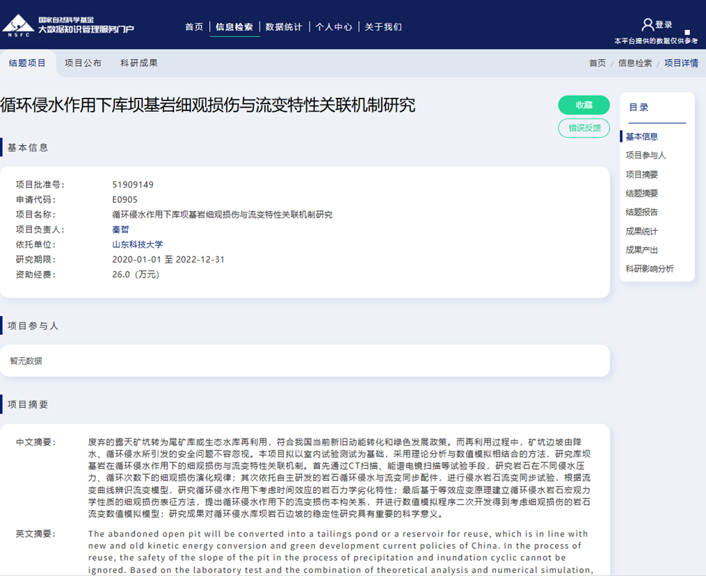 6-8 国家自然科学基金青年基金:循环侵水作用下库坝基岩细观损伤与流变特性关联机制研究