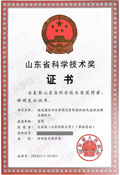 6-36 王洪波:山东省人民政府授予“山东省科技进步奖一等奖”