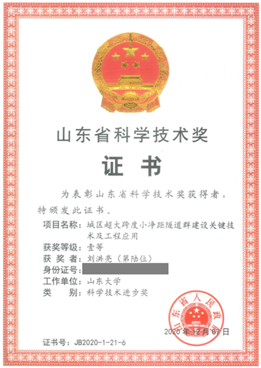 6-41 刘洪亮:山东省人民政府授予“山东省科学技术进步奖”