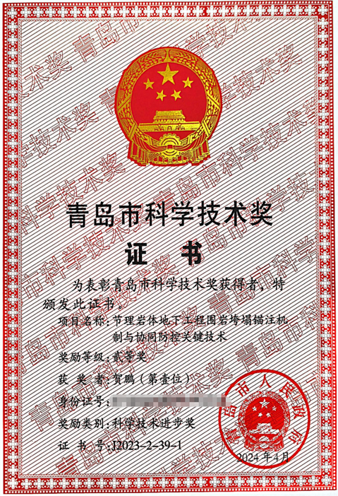 6-47 贺鹏:青岛市人民政府授予“青岛市科技进步奖二等奖”
