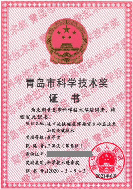 6-48 王洪波:青岛市人民政府授予“青岛市科技进步奖三等奖”
