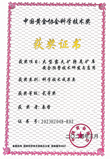 6-50 秦哲:中国黄金协会授予“科学技术二等奖”