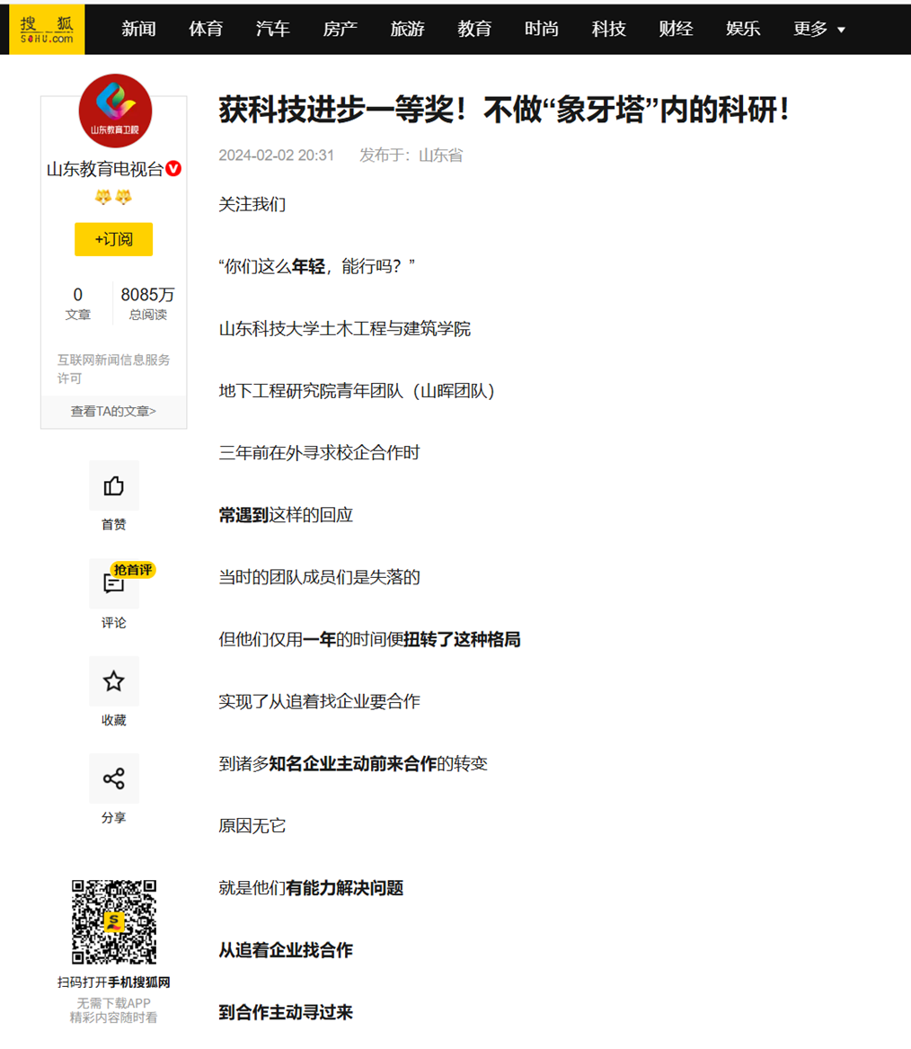 7-11 搜狐网:获科技进步一等奖!不做“象牙塔”内的科研!