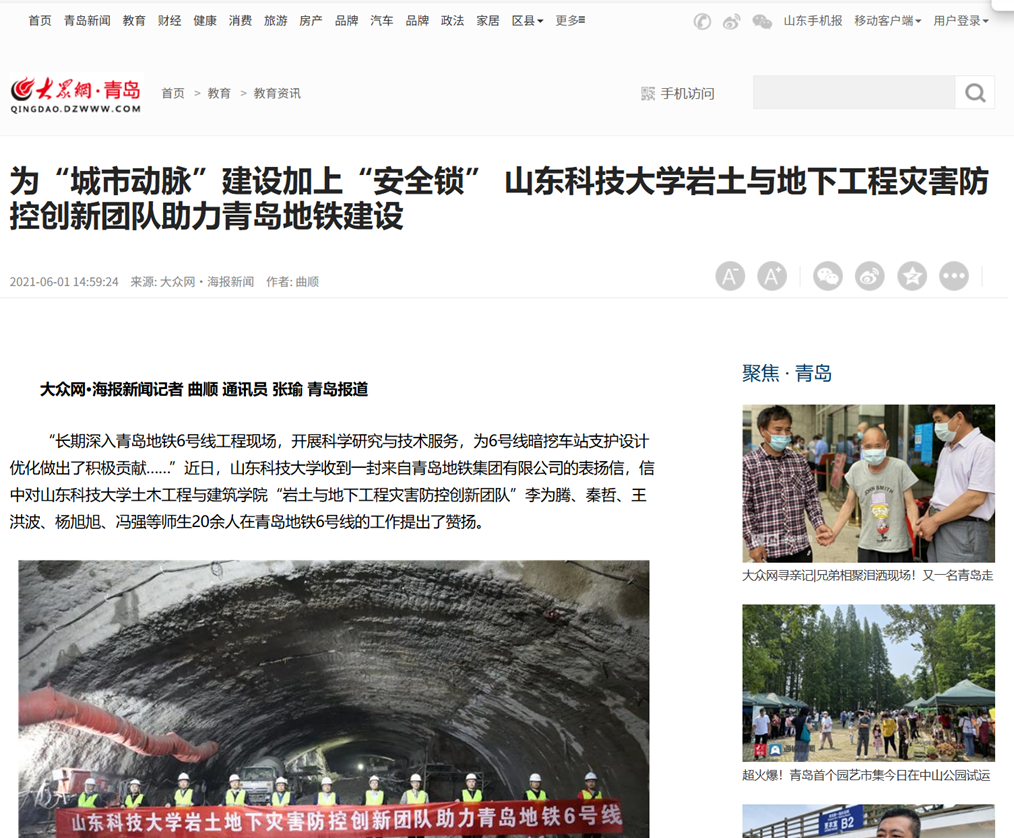 报道链接:http://qingdao.dzwww.com/jiaoyu/jiaoyuzixun/202106/t20210601_8565320.htm