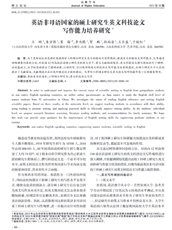 8-4 高教学刊:英语非母语国家的硕士研究生英文科技论文写作能力培养研究