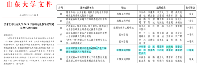 8-17 山东大学研究生教学成果奖一等奖:面向国家工程重大需求的教学—实践—产教三维驱动的创新人才培养模式