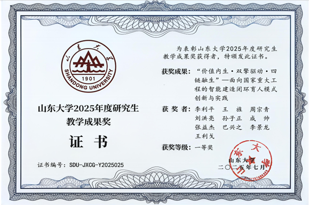 8-18 山东大学研究生教学成果奖一等奖:“价值内生·双擎驱动·四链融生”—面向国家重大工程的智能建造闭环育人模式创新与实践