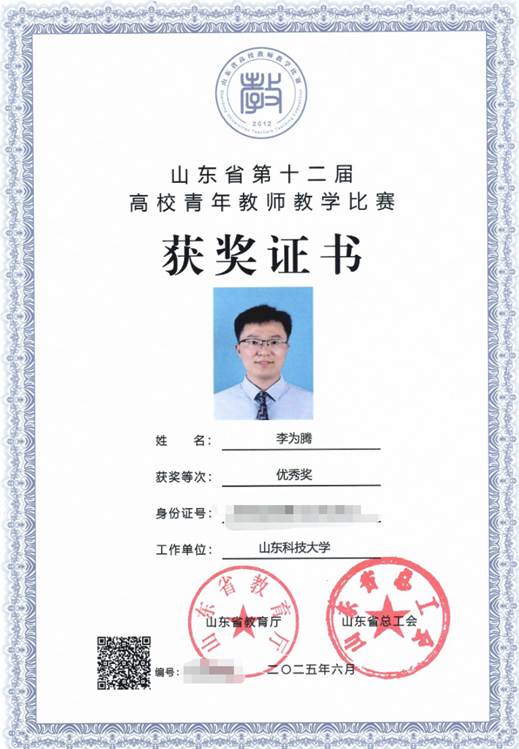 8-24 山东省青年教师教学比赛优秀奖:李为腾